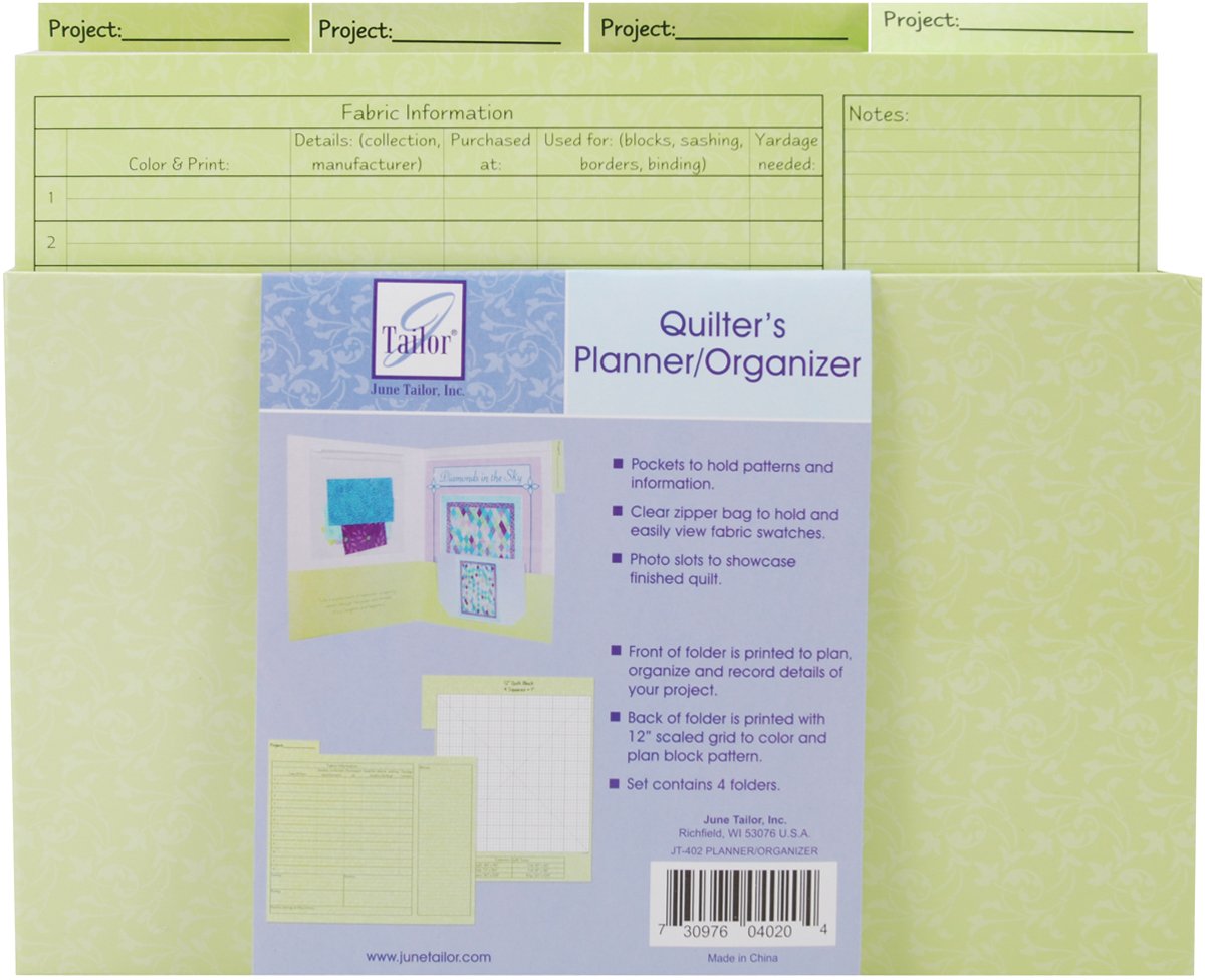 and the printable coloring page for this quilt. Also all 12 installments which is the individual blocks for each month. I do not want to do the colors in the instructions prefering to go with colors that I know are Tina's favorites Yellow and Blue. I made cards for each fabric and the amount needed of each. I then put all my print outs and notes in June Tailor's Quilter's Planner/Organizer.